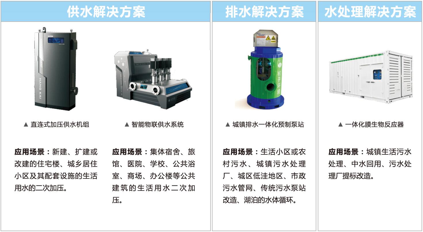 公司產品包含直連式加壓供水機組、智能物聯供水設備、智能調控供水系統、城鎮排水一體化預制泵站、城鎮一體化污水處理設備、河道極速處理一體化設備及智慧水務平臺。產品涵蓋的范圍比較廣。