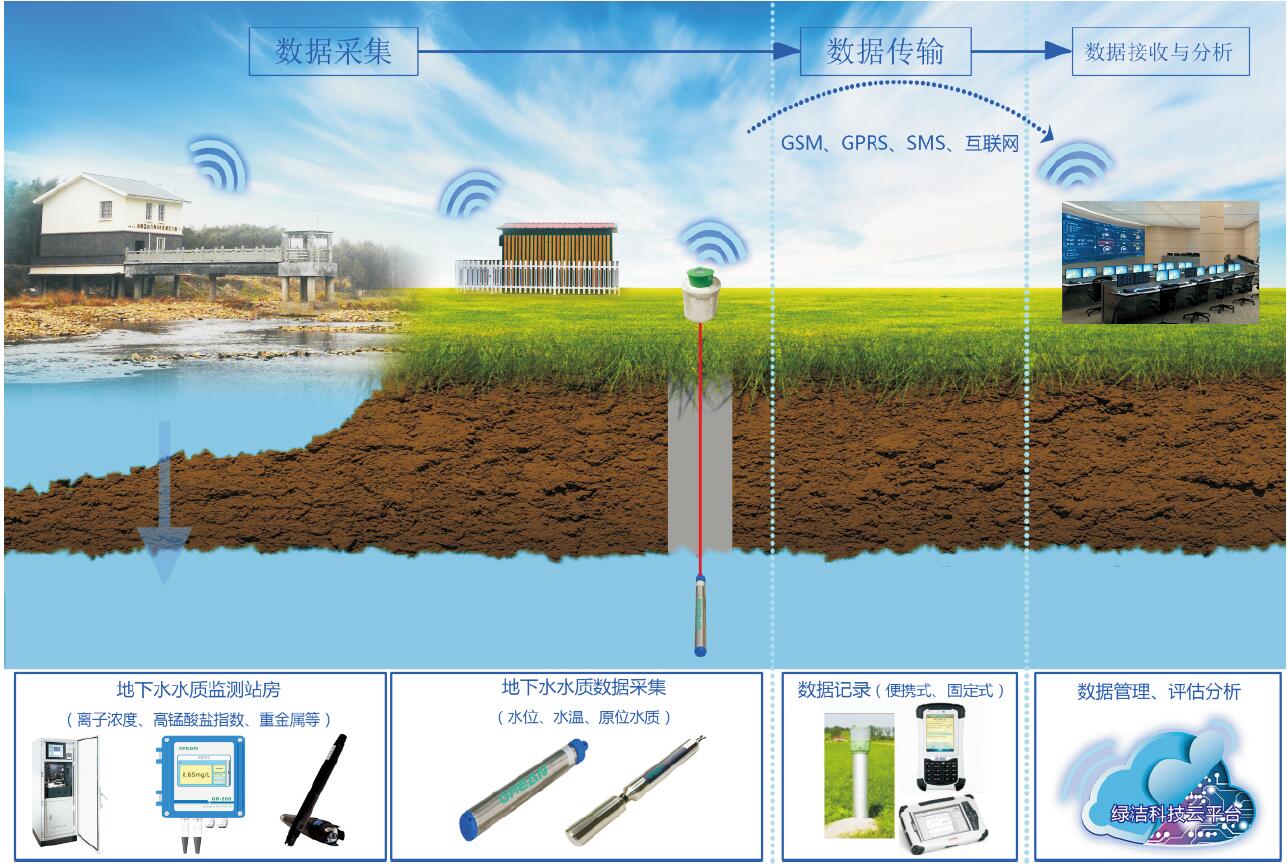綠潔科技地下水水質自動監測系統可通過建立抽取式監測站房及投入式原位監測兩種方式進行監測。