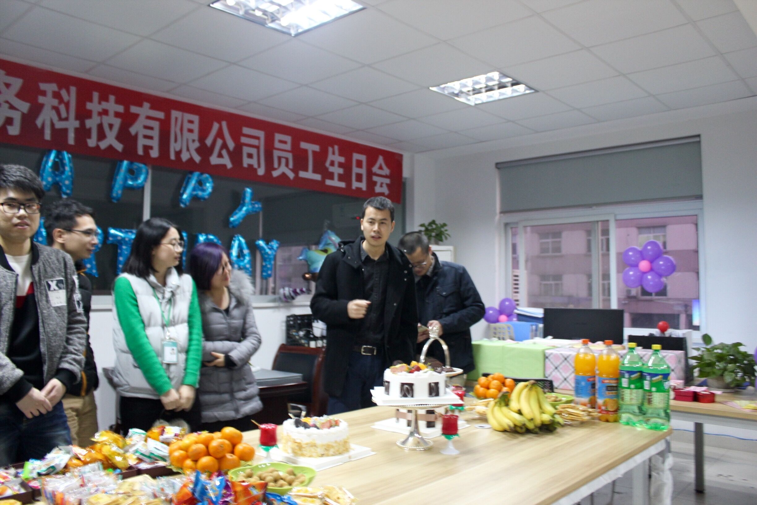 綠潔水務科技有限公司12月份員工生日會在一片喜氣洋洋中度過,雖然短暫,但它帶來的溫暖缺駐留在每一位員工心中。大家不分職務、年齡、部門地圍成一團,彼此分享生日的喜悅與可口的美食,為自己的同事,朋友們送上由衷的祝福,為綠潔這個大家庭在寒冬中增添了不少融融溫情。在平等、開放、高效、進取的工作環境中,相信綠潔會為社會、為客戶帶來更多的價值與驚喜。