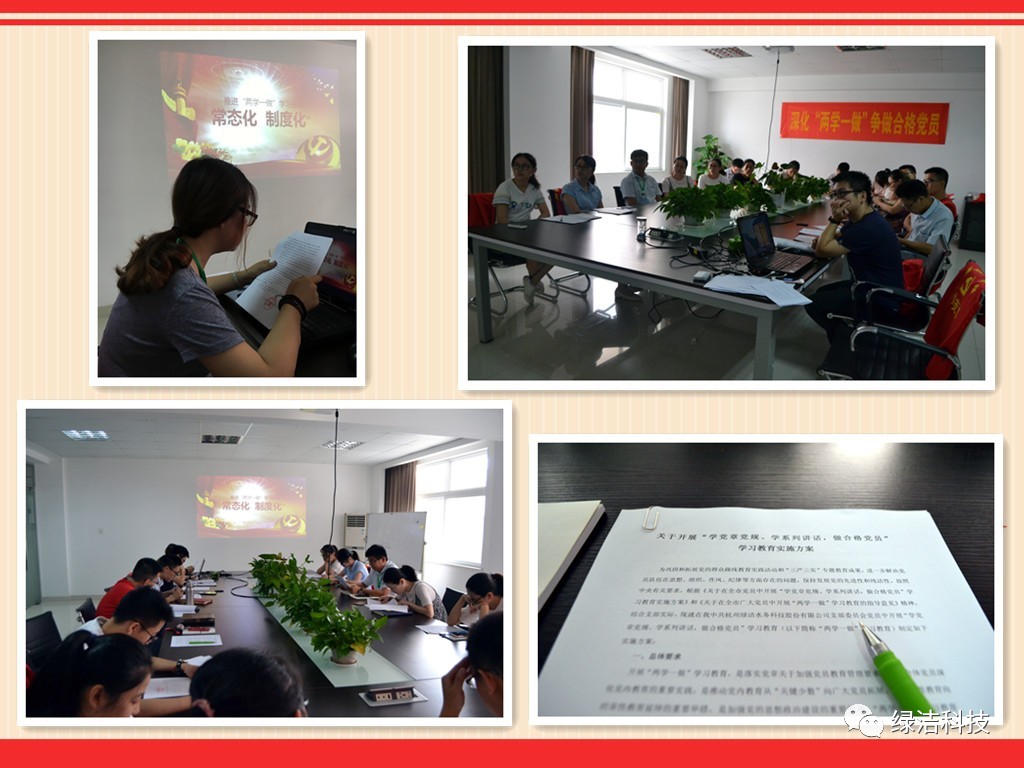 宣讀《綠潔黨支部“兩學(xué)一做”教育活動實施方案》