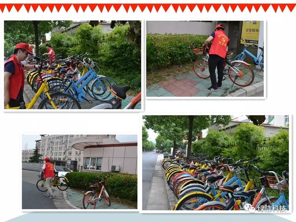 對園區(qū)內(nèi)外隨意停放的共享單車進(jìn)行整理