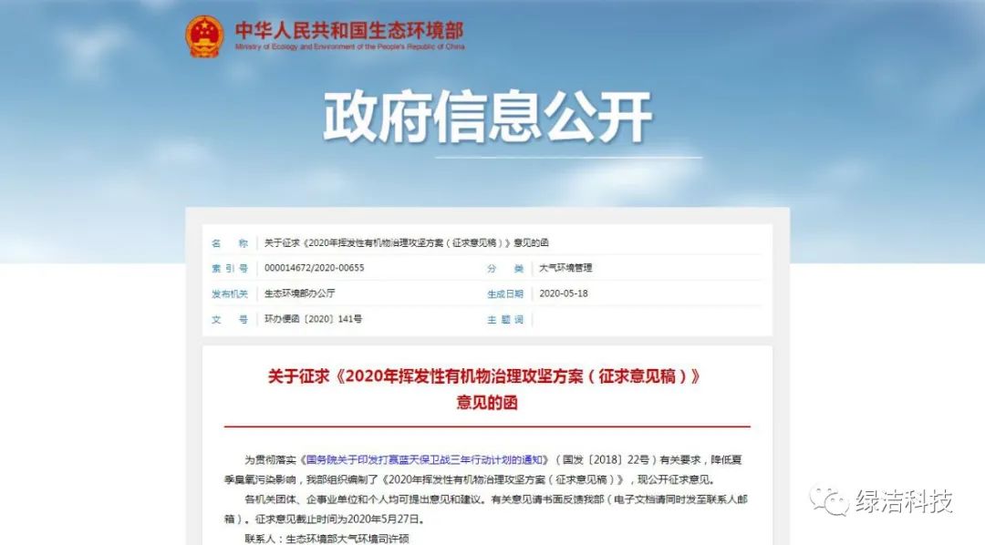 2020年是打贏藍天保衛(wèi)戰(zhàn)的決勝之年,為貫徹落實《國務(wù)院關(guān)于印發(fā)打贏藍天保衛(wèi)戰(zhàn)三年行動計劃的通知》(國發(fā)〔2018〕22號)有關(guān)要求,降低夏季臭氧污染影響,生態(tài)環(huán)境部組織編制并了《2020年揮發(fā)性有機物治理攻堅方案(征求意見稿)》。