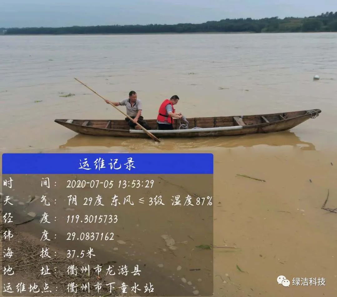 與此同時,衢州市下童國控站點的采水設備于7月1日、7月4日先后兩次被洪峰沖毀,被迫申請停站。7月5日待天氣稍有好轉龍游監測站再次組織人員與綠潔運維工程師一起搶修采水設施,24小時之內各項監測指標數據恢復正常,并向中國環境監測總站提交復站申請。