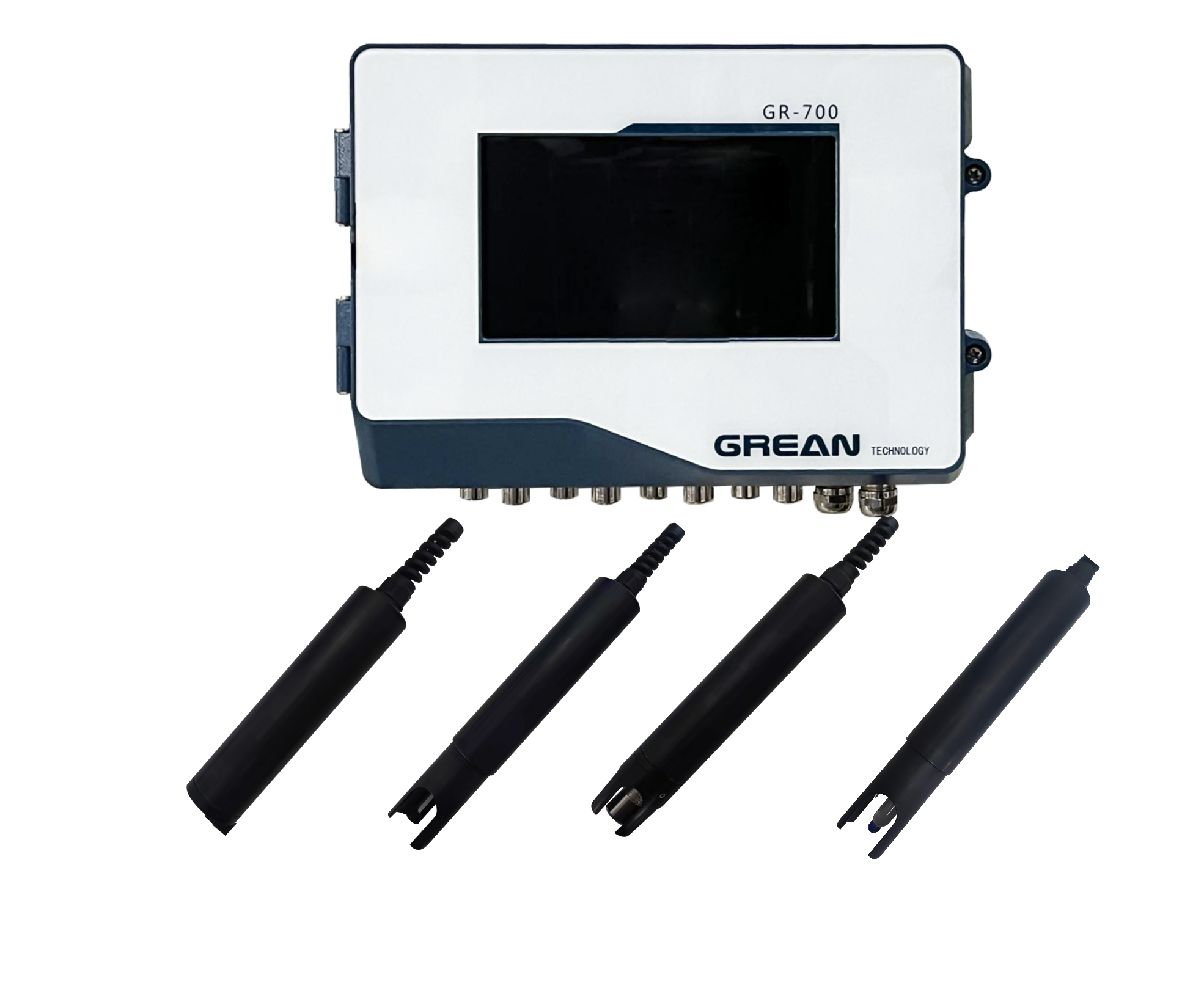 GR-6600 在線五參數分析儀包括GR-700控制器、復合pH電極、電極電導率、溶解氧以及濁度傳感器。復合pH電極基于基于電位分析法進行測量,電極電導率通過兩電極法進行測量。濁度傳感器采用 90°散射法進行測量。溶解氧采用電化學法原理來進行測量。